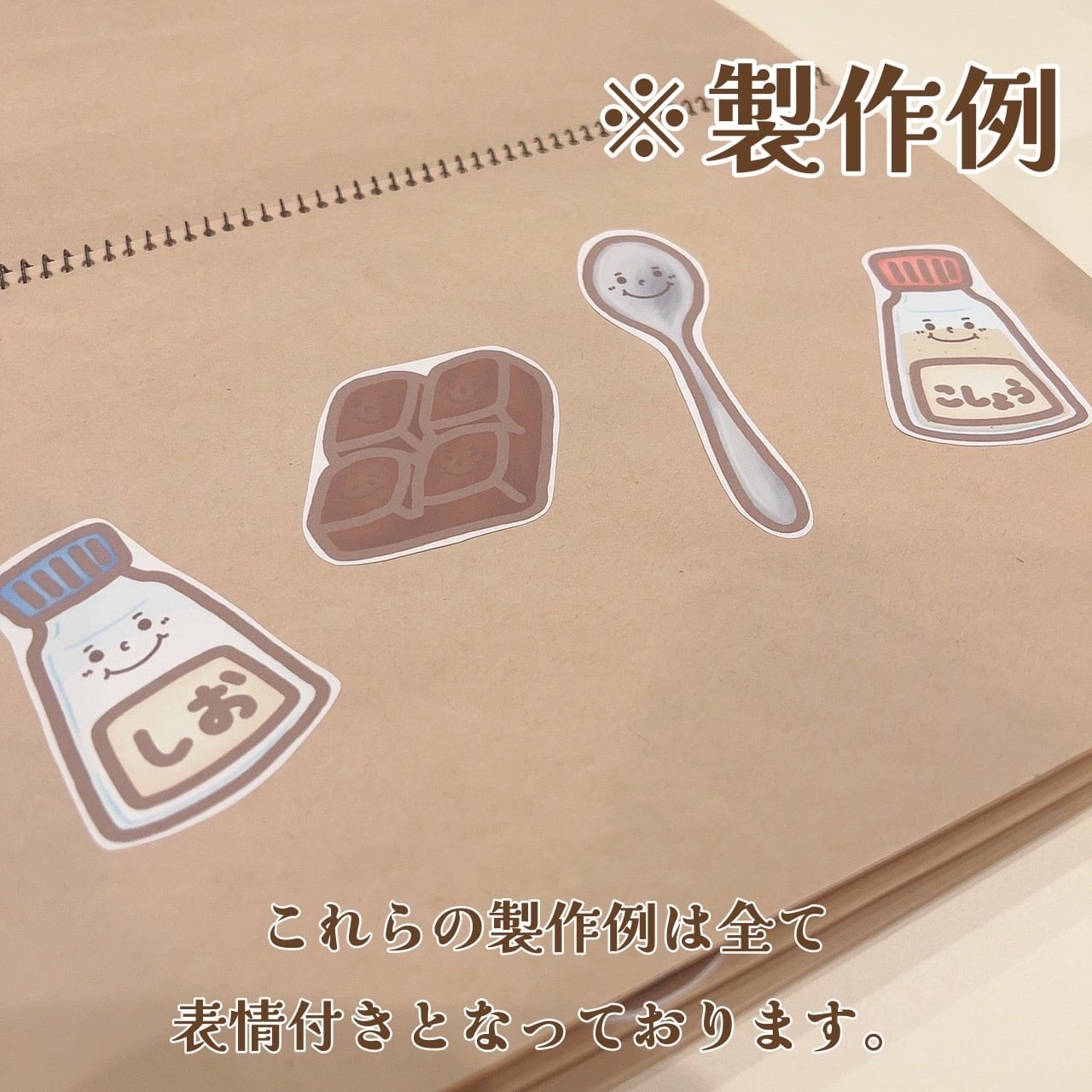 食材に表情のついた可愛らしいパターンもございますので、一覧からご確認頂き、欲しい方をご購入ください。